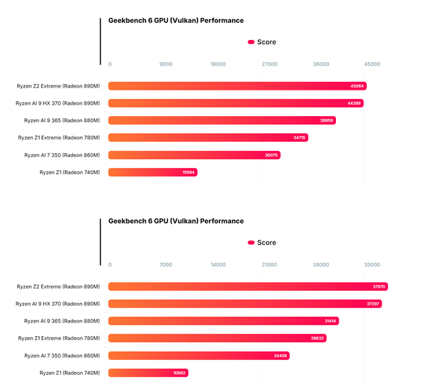 在图形性能方面,AMD为Ryzen Z2 Extreme配备了Radeon 890M“RDNA 3.5”,包含16个计算单元,频率为2.9GHz,支持AMD的最新技术,如FSR、Frame-Gen、Fluid Motion Frames等。