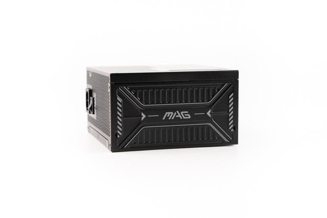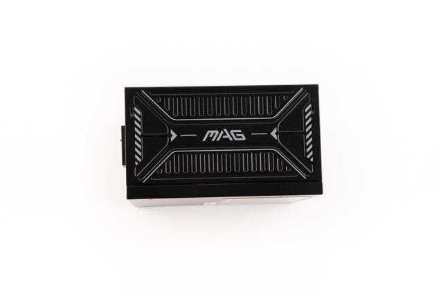 电源侧面,融入了不少设计元素,中间印刷有MAG字样,上下为冲压的格栅元素,左右两侧印刷有装饰条纹。