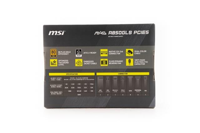 包装顶部,印刷了产品型号MAG A850GLS PCIE5。